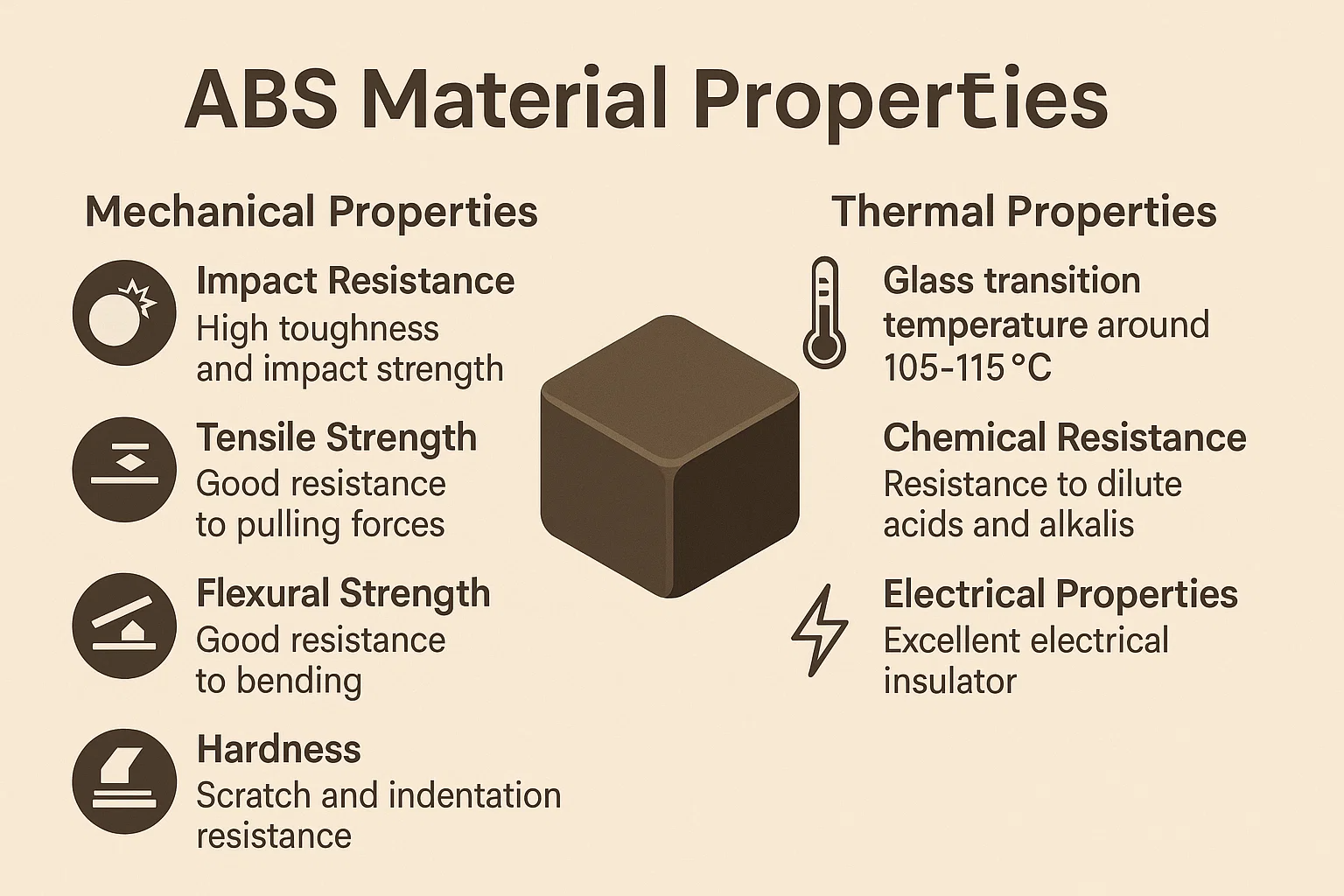 Konsekvensbestandighed: Dette er måske det mest definerende kendetegn ved ABS. Butadien -gummifasen giver enestående sejhed og modstand mod påvirkning, hvilket gør den mindre sprød end mange andre almindelige plast.