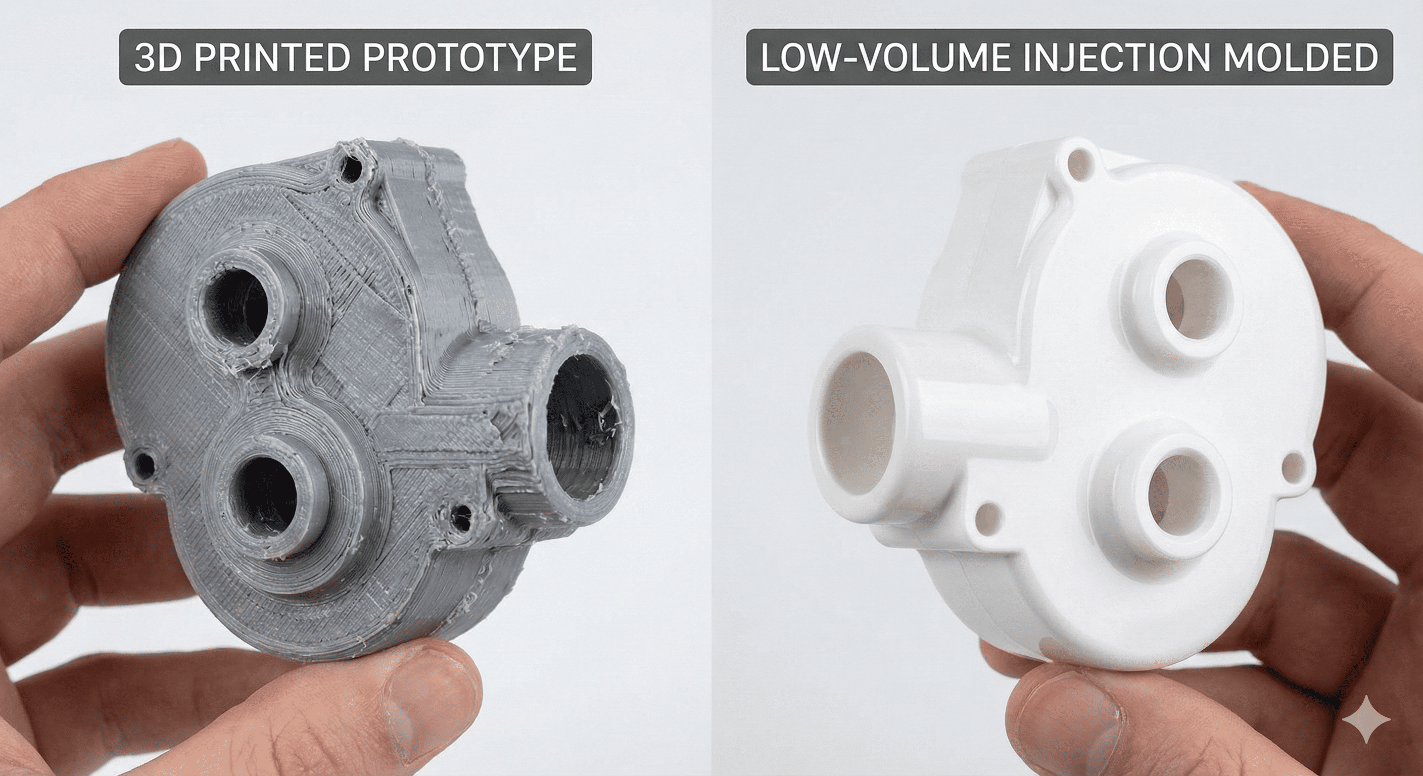 Tænk på det på denne måde: 3D-print er som at tage en taxa. Det er praktisk til en kort tur, men du ville ikke bruge en til at køre på tværs af landet. Lavvolumen sprøjtestøbning er som at lease en bil. Der er lidt papirarbejde og en udbetaling (formprisen) i starten, men efter det er hver kilometer - eller hver del - væsentligt billigere.