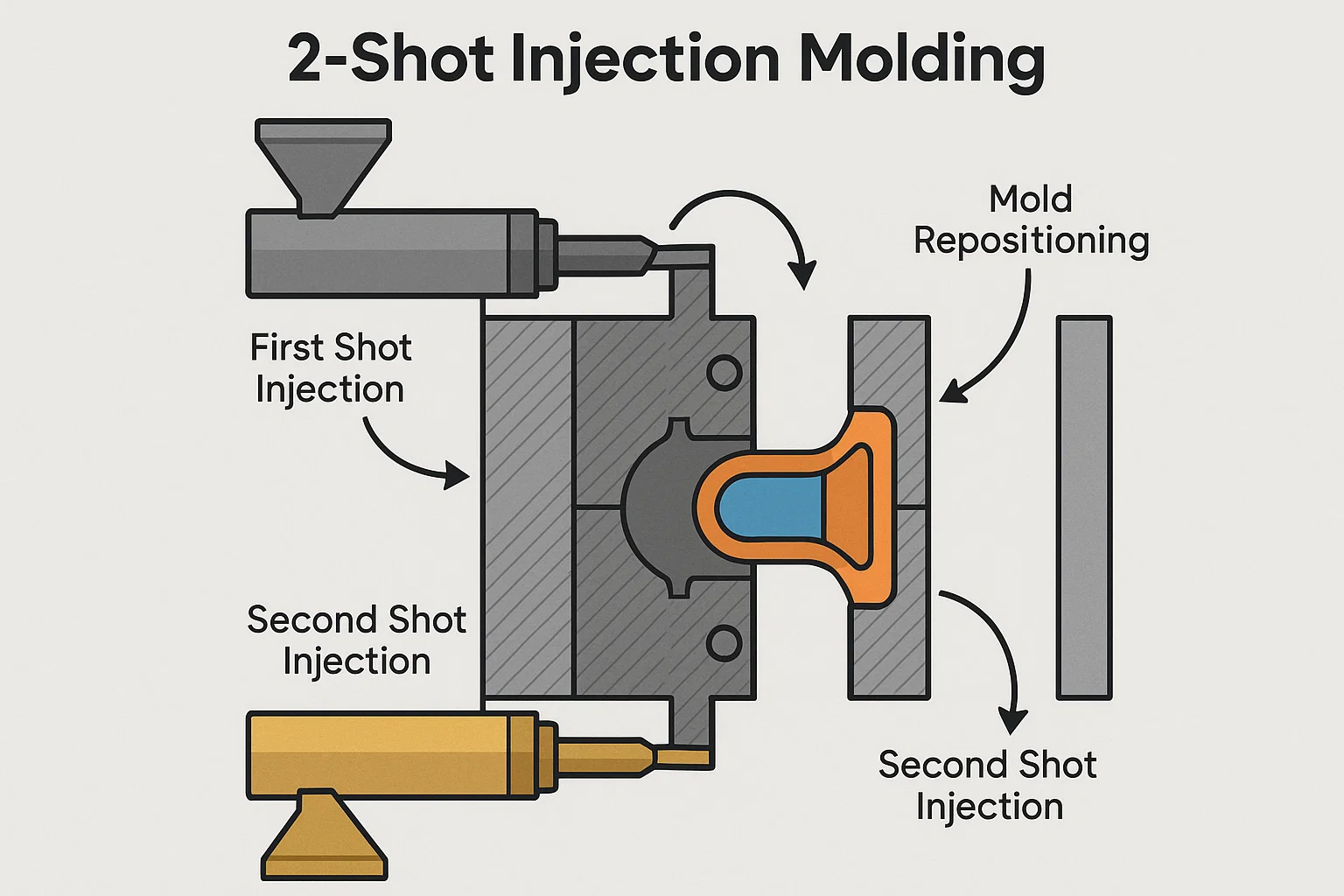 I kernen, 2-shot-injektionsstøbning (også kendt som to-shot-støbning) er en højt specialiseret fremstillingsproces, der producerer en enkelt, færdig komponent fra to forskellige materialer i en enkelt, kontinuerlig støbningscyklus. I modsætning til traditionelle metoder, hvor flere dele støbes separat og derefter samles, kombinerer 2-shot støbning disse trin til en effektiv operation. Denne proces er medvirkende til at skabe dele med komplekse geometrier, integrerede sæler, flerfarve æstetik og forbedret funktionalitet uden behov for sekundær samling.