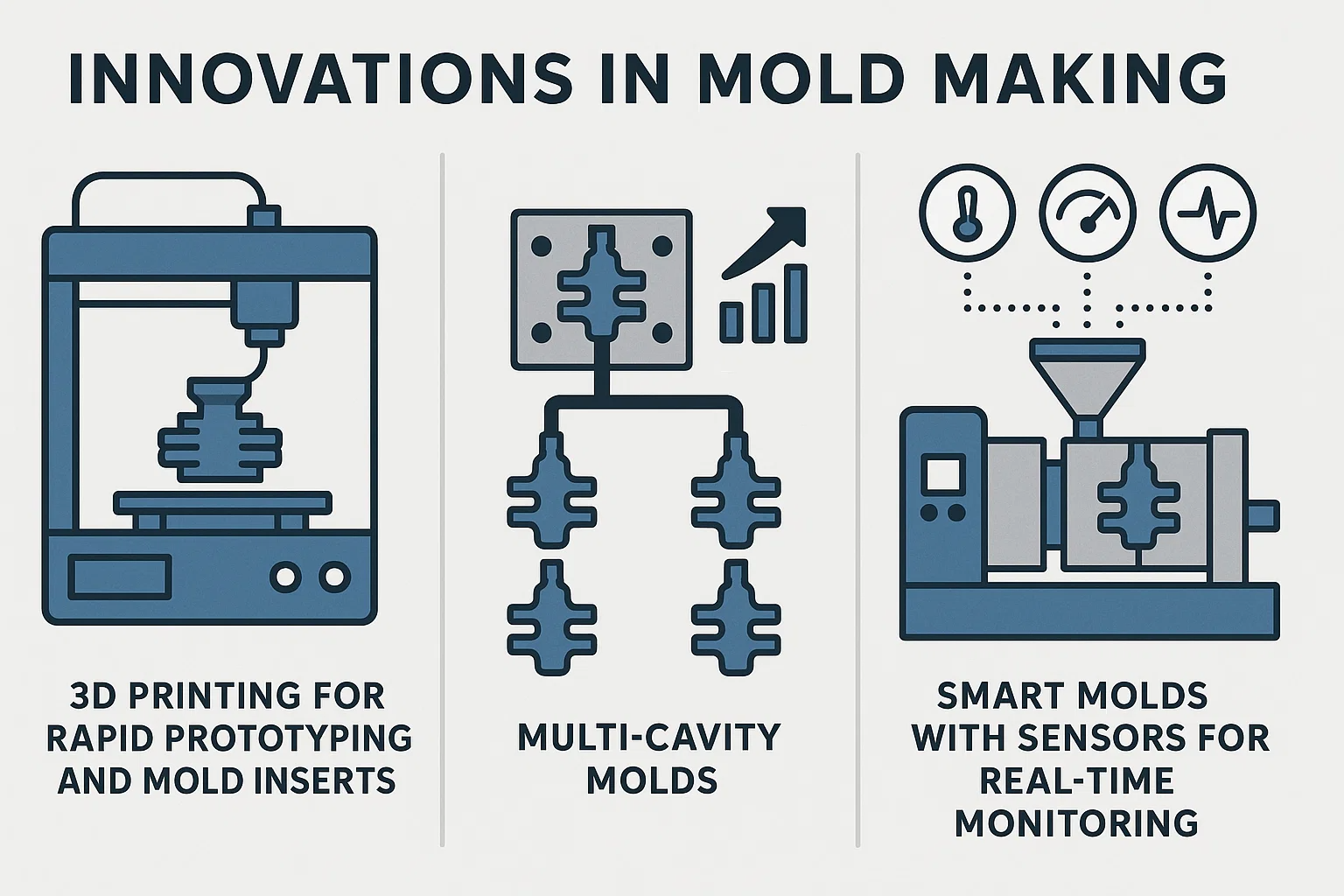 Måske er en af de mest transformative innovationer integrationen af 3D -udskrivning (additivfremstilling) ind i den muggemakning af arbejdsgang. Mens direkte 3D-udskrivning af produktionsforme i fuld skala stadig er begrænset på grund af krav til materialestyrke og overfladefinish, er dens indflydelse på prototype og specialiserede formkomponenter enorm: