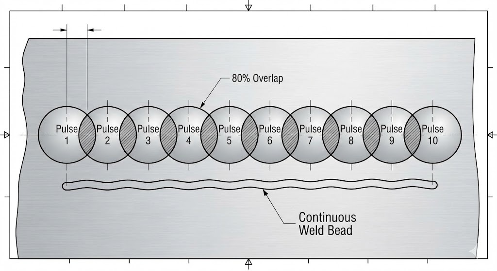 - Kontinuerlig/overlappende svejsning: Teknikere overlapper hver "prik" med 70-80 % at skabe en sømløs, solid perle af metal.