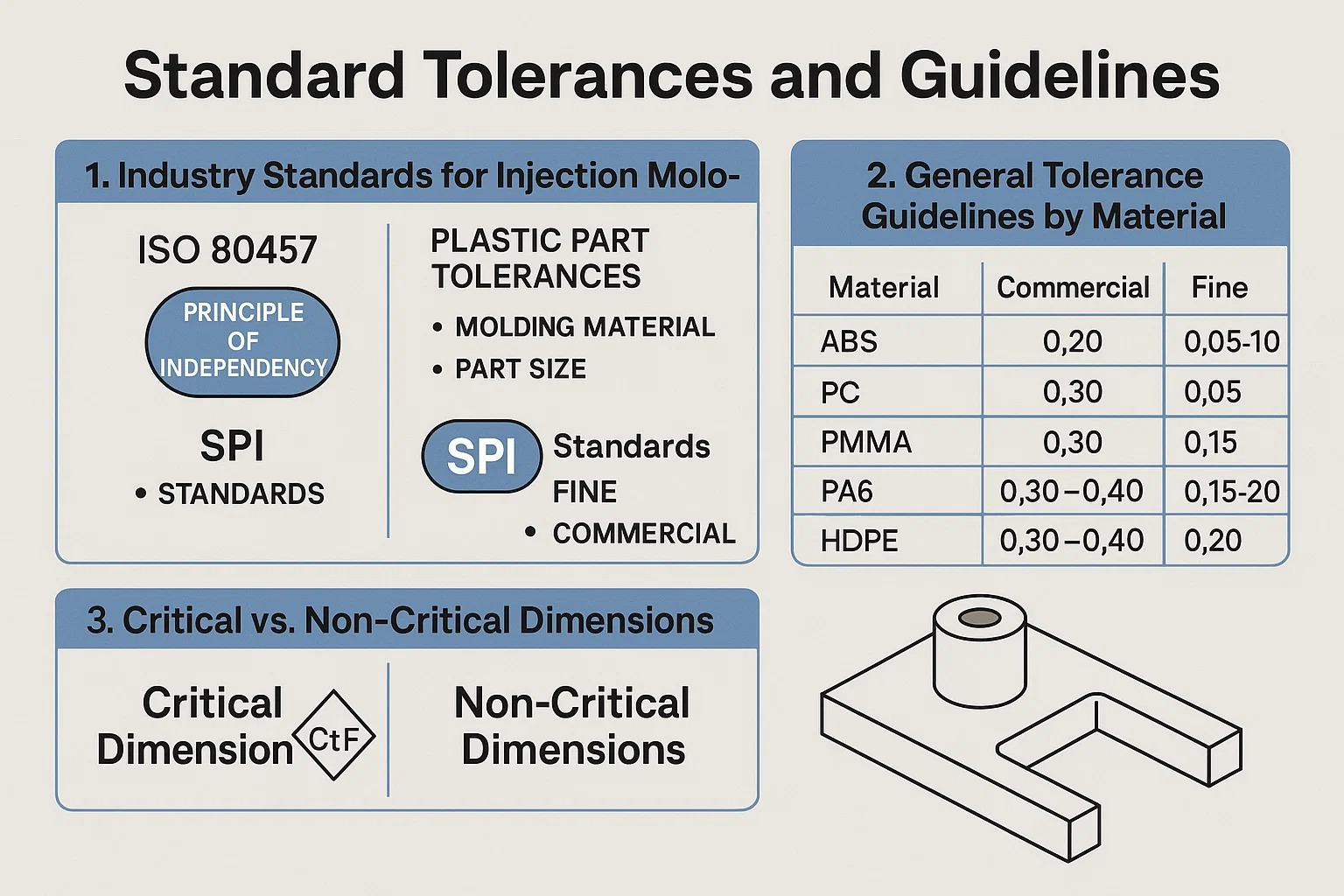 På grund af dette er tolerancer i sprøjtestøbning klassificeret i to generelle kategorier: